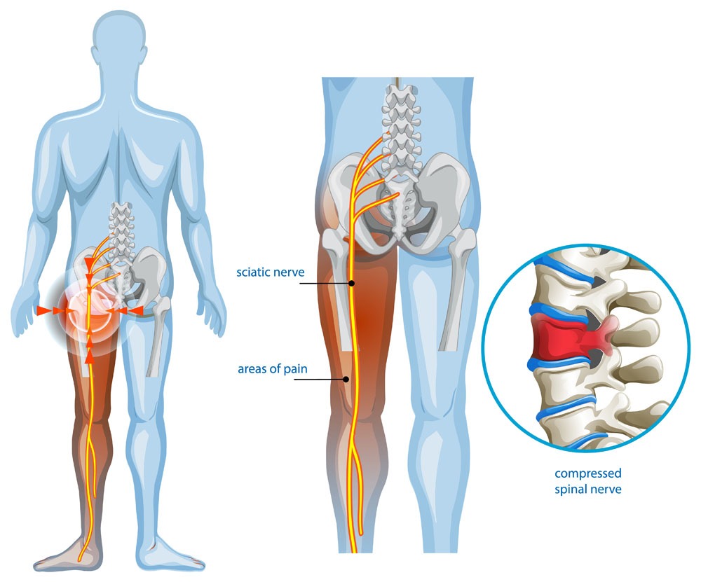 Sciatica is not a diagnosis, but a symptom of an underlying condition affecting the sciatic nerve. This nerve is the longest in the human body, running from the lower back through the buttocks and down the legs. When compressed—often by a herniated disc or spinal stenosis—it results in sciatic nerve pain.